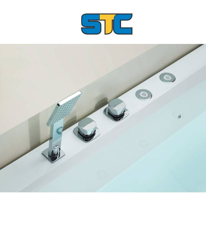 “” ①ON / OFF طريقة التحكم في مفتاح الهواء ② تدليك الدوامة المائية (مضخة مياه 1HP ، 4 قطع كبيرة + 6 قطع تصميم صغير نحيف للغاية) ③ تعمل بدون حماية المياه لمضخة المياه ④ تعديل الدوامة الهوائية swtich (تصميم نحيف للغاية) ⑤ مصباح كولوفول LED تحت الماء ، وسادة قطعة واحدة (لون رمادي غامق) ⑥ خلاط الماء الساخن والبارد وخلاط المحول ودش يدوي ⑦ تجفيف المياه العكسية مع تدفق المياه والفيضان ⑧ ساحة ثلاثية الجوانب مصباح LED ملون للديكور على المئزر “” “